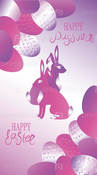 Пасхальная открытка с пасхальными кроликами и пасхальными яйцами