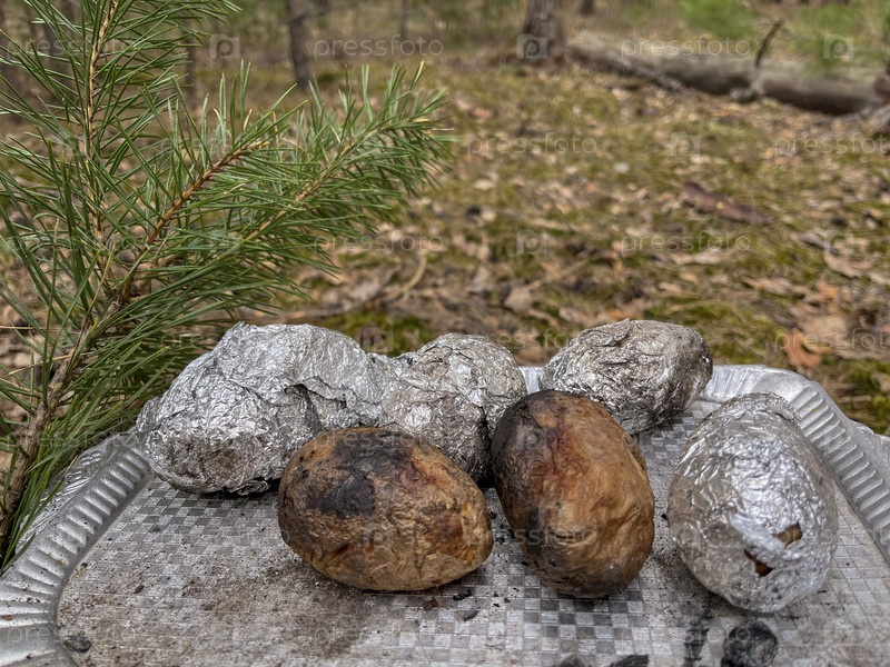 Картофель запекают в фольге в лесу