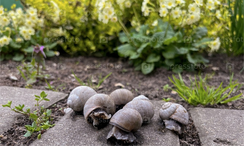 Виноградная улитка в саду весной
