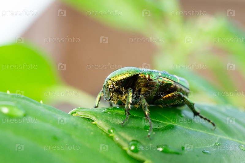 Cetonia aurata зеленый лист