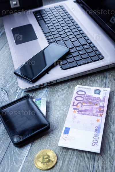 Банковская карта ноутбук смартфон евро
