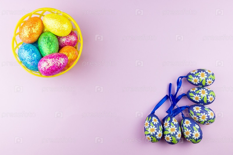 Пасхальные яйца на розовом фоне