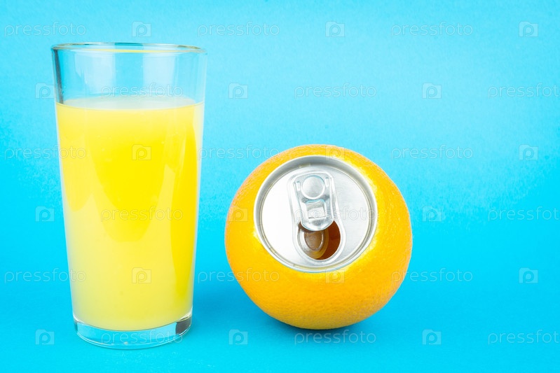 Апельсиновый сок на синем фоне