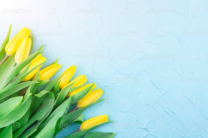 Желтые тюльпаны на синем фоне