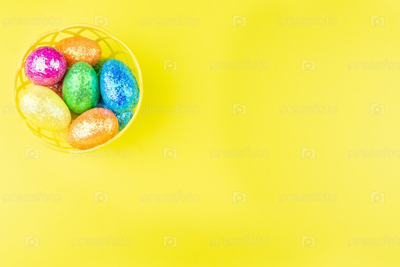 Пасхальные яйца на желтом фоне