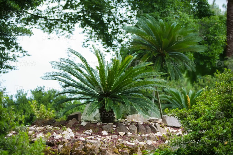 Красивые зеленые пальмы в ботаническом саду