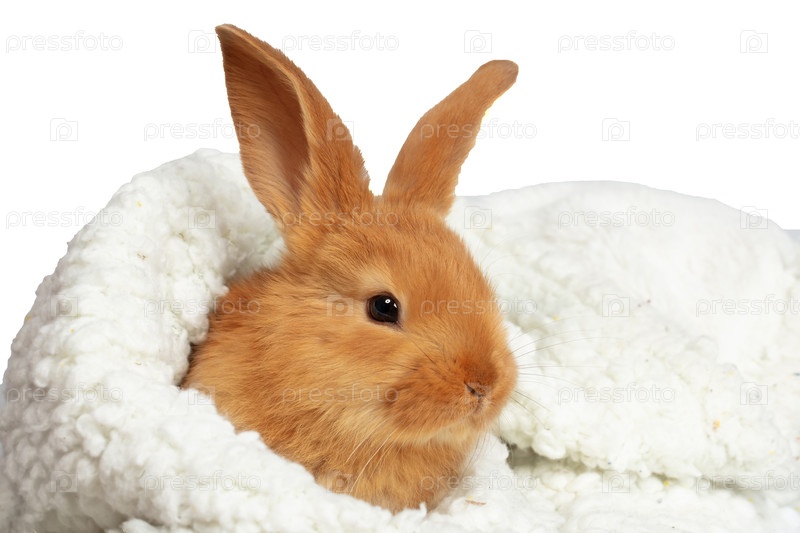 Милый кролик завернут в белое пушистое полотенце