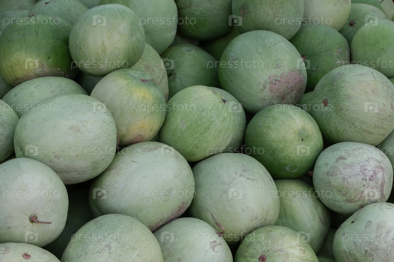 Крупный план зеленых тыкв, сложенных в кучу. Продажа тыкв и осеннего урожая