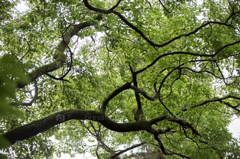 Естественный фон. Липа липа с извилистыми ветвями и зеленой листвой