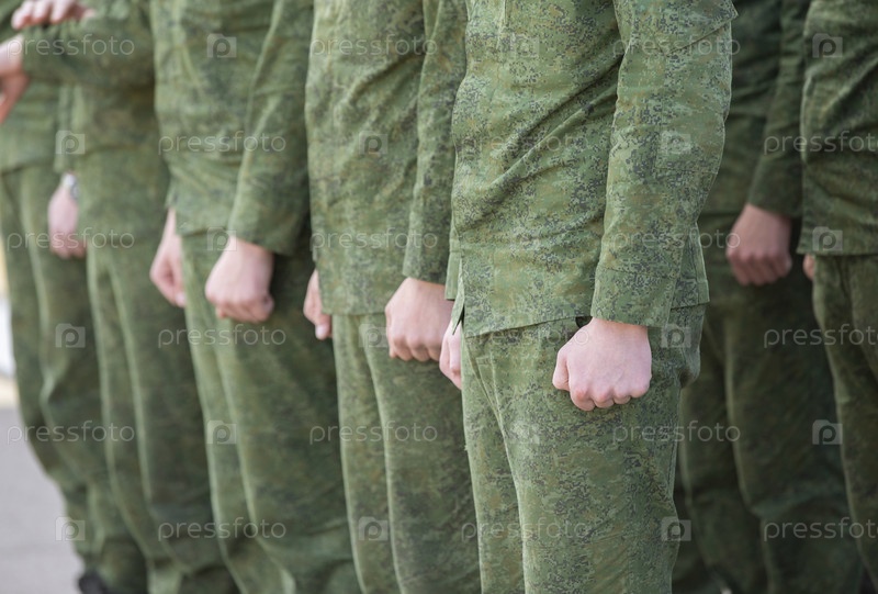 Строй солдат-мужчин в военной форме