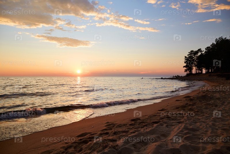 Красивый летний закат над озером Байкал
