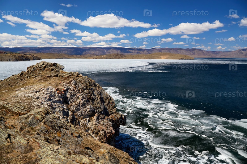 Весенний пейзаж озера Байкал в солнечный майский день