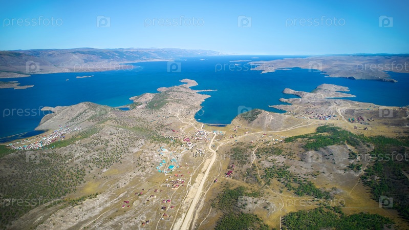 Озеро Байкал летом с воздуха. Вид на побережье и заливы
