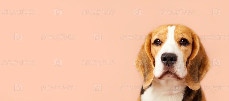 Портрет собаки породы бигль на изолированном фоне. Баннер. Копировать пространство