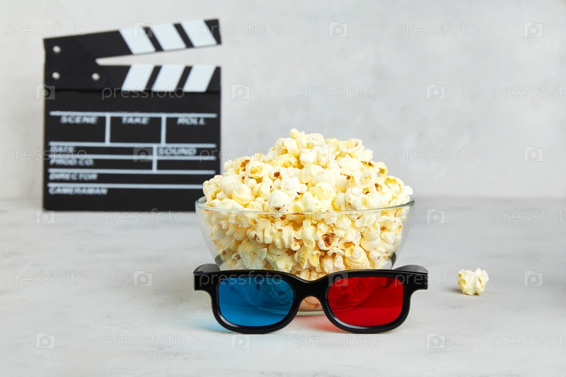 Тарелка с попкорном и 3D-очки для просмотра фильмов с друзьями