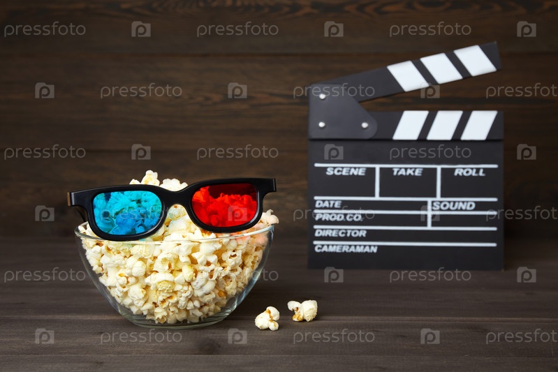Тарелка с попкорном и 3D-очки для просмотра фильмов с друзьями