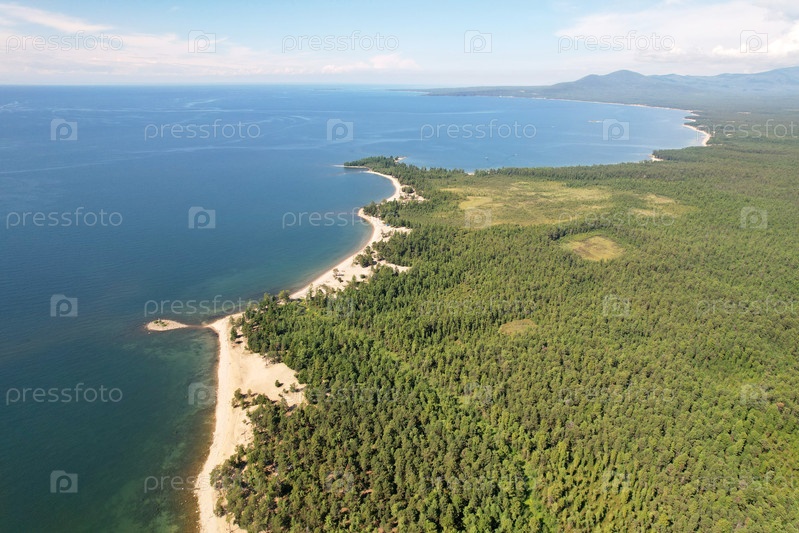 Красивый летний морской пейзаж с воздуха. Песчаный пляж