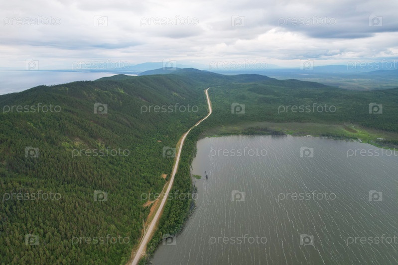 Дорога вдоль озера Духовое с воздуха