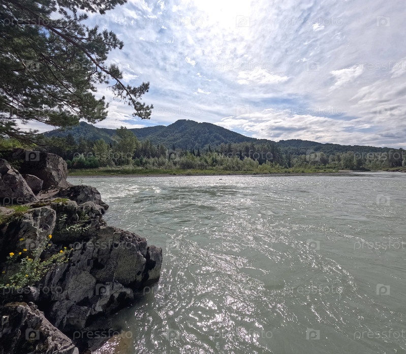 Река Катун в начале лета, горы, Республика Алтай. Россия