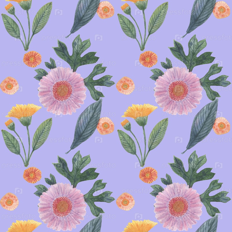 Бесшовный принт с цветами и листьями