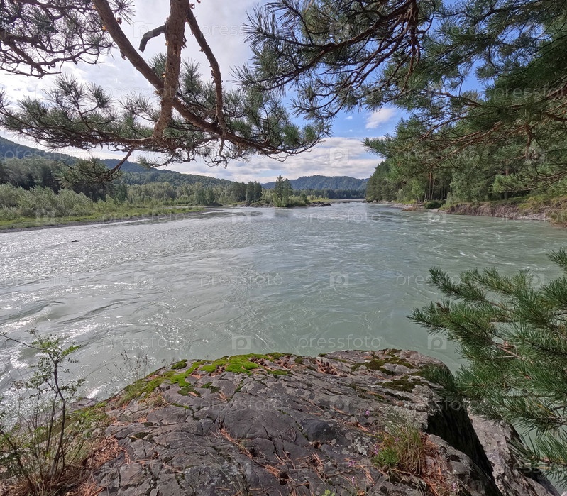 Река Катун, бурный поток в начале лета Горный Алтай, Россия