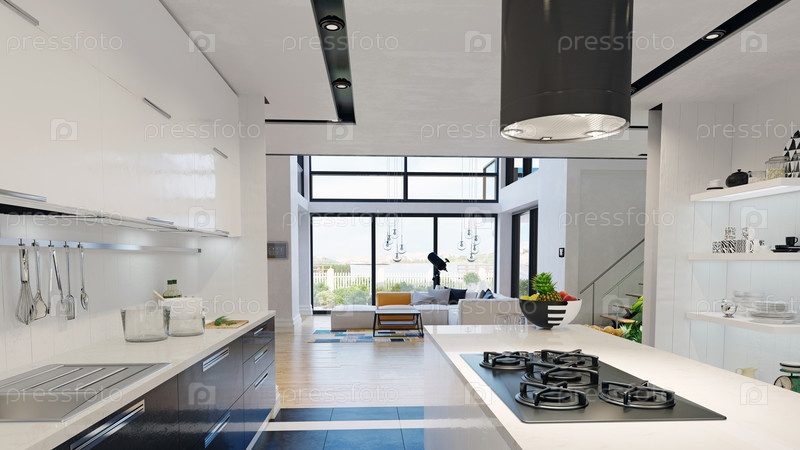 Современный интерьер дома. 3d визуализация концепции дизайна