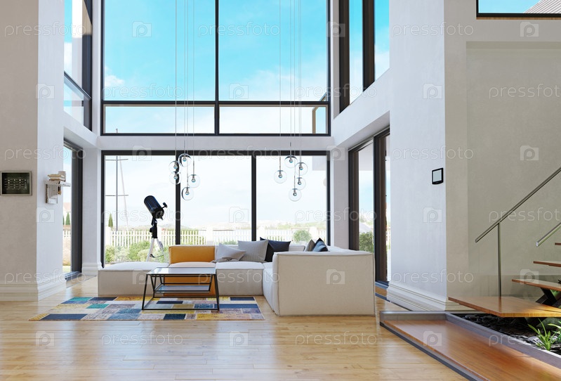 Современный интерьер дома. 3d визуализация концепции дизайна