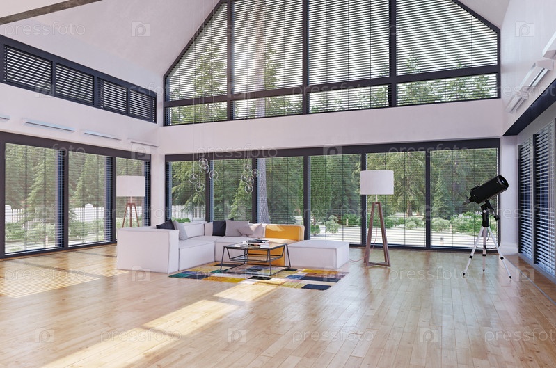 Современный интерьер дома. 3d визуализация концепции дизайна