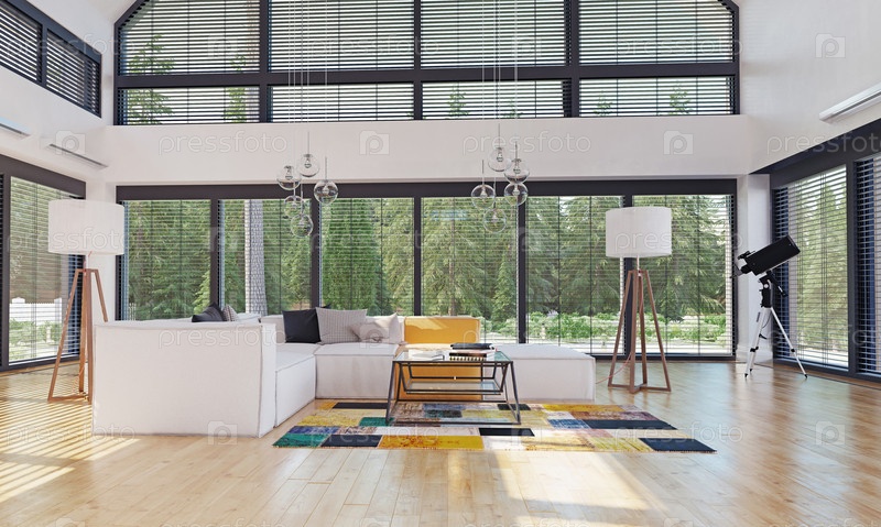 Современный интерьер дома. 3d визуализация концепции дизайна