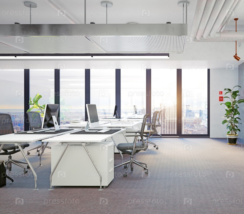 Современный интерьер офиса, 3d визуализация концепции дизайна