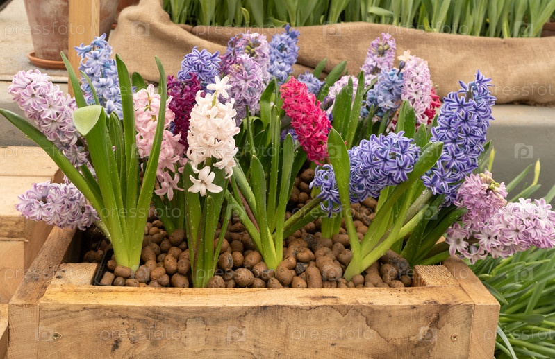 Гиацинты в деревянном ящике