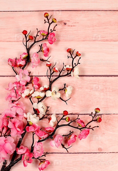 Натюрморт с красивыми цветущими ветвями сакуры, Весенняя абстрактная цветочная композиция. Поздравительная открытка на день матери, женский день, с днем рождения, свадьба, подарок для любимых