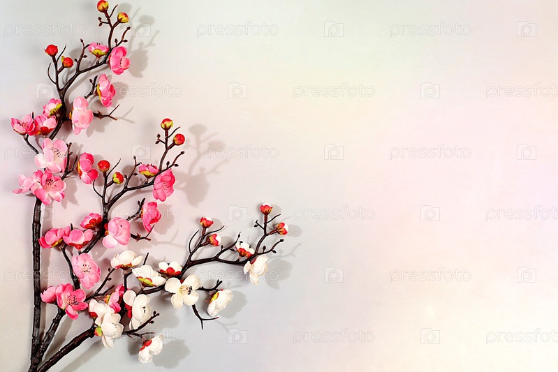 Весенняя абстрактная цветочная композиция, натюрморт с красивыми цветущими ветвями сакуры, баннер для экрана с местом для текста. Поздравительная открытка на день матери, женский день, с днем рождения