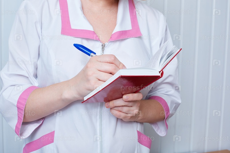 Врач или медсестра держит в руке блокнот и пишет в нем