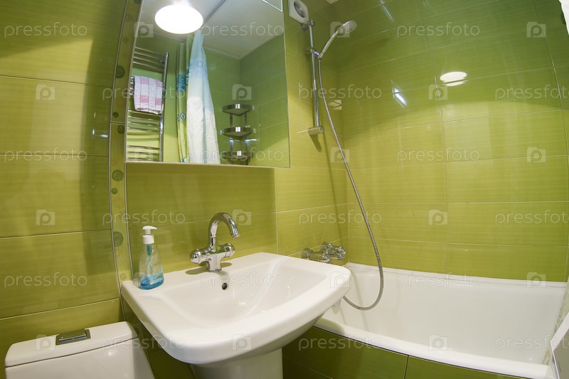 Небольшая ванная комната. С раковиной, ванной и зеркальными шкафами