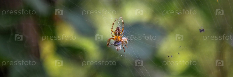 Паук сидит на своей паутине. Паук-крестовик