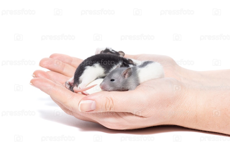 Крысята в руках на белом фоне