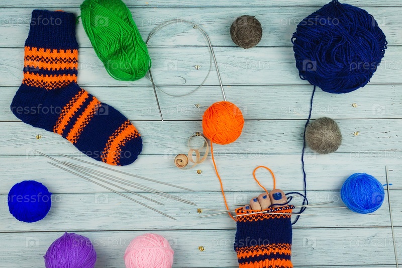 Вязание на синем фоне