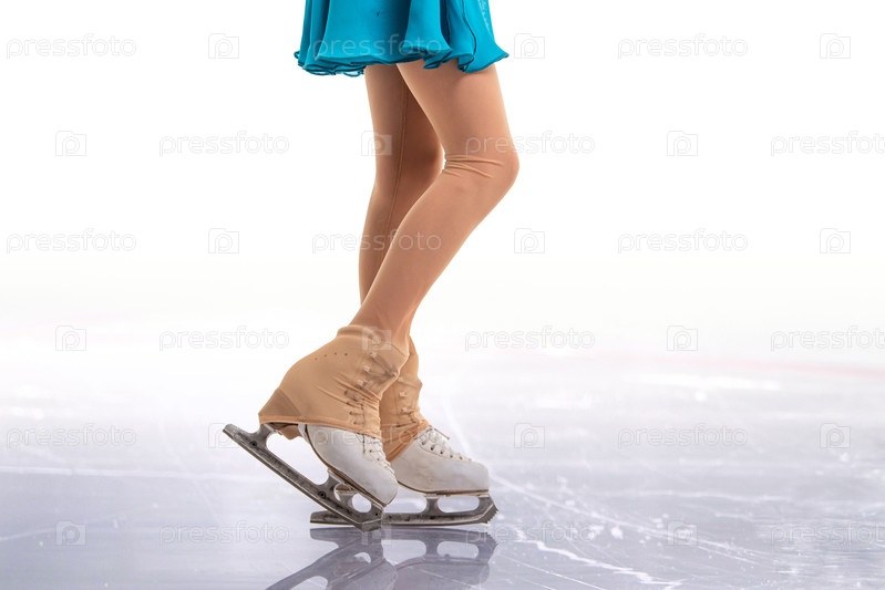 Детские белые коньки фигуриста, скользящего по льду - профессиональное фигурное катание