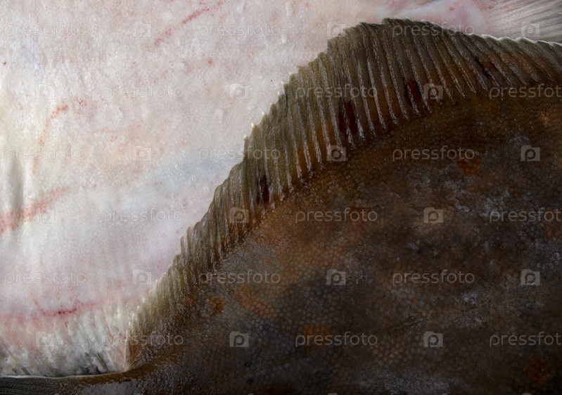 Две целые камбалы без голов крупным планом. Вид сверху. Текстура рыбы