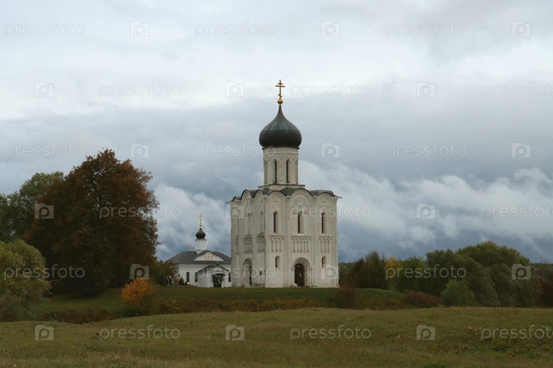 Церковь Покрова на Нерли на открытом пространстве в городе Владимире, Россия
