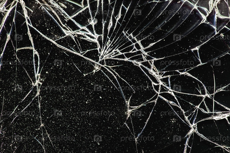 Белое треснувшее стекло с пылью на черном фоне, текстура