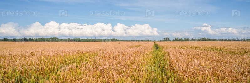 Широкое поле спелой пшеницы в солнечный день