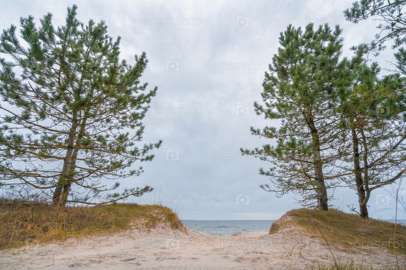 Лес на побережье Балтийского моря в пасмурный день осенью