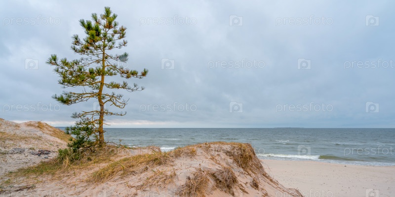 Лес на побережье Балтийского моря в пасмурный день осенью