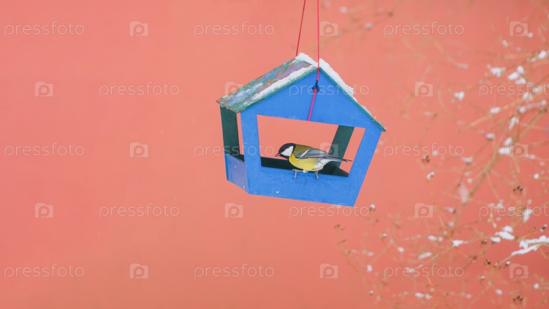 Птицы в кормушке холодным зимним днем