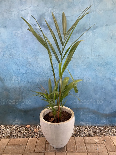 Пальма в горшке на голубом фоне