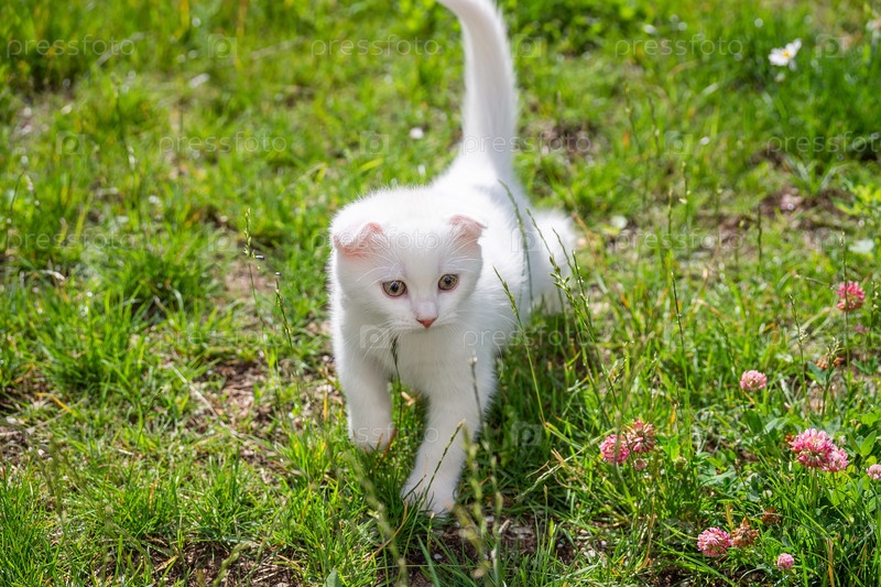 Белый котенок на траве