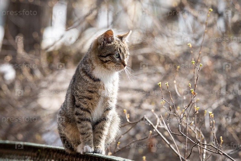 Серый котенок на заборе