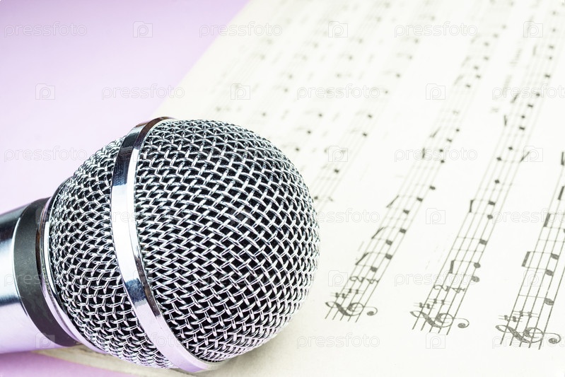 Динамический микрофон на нотном листе